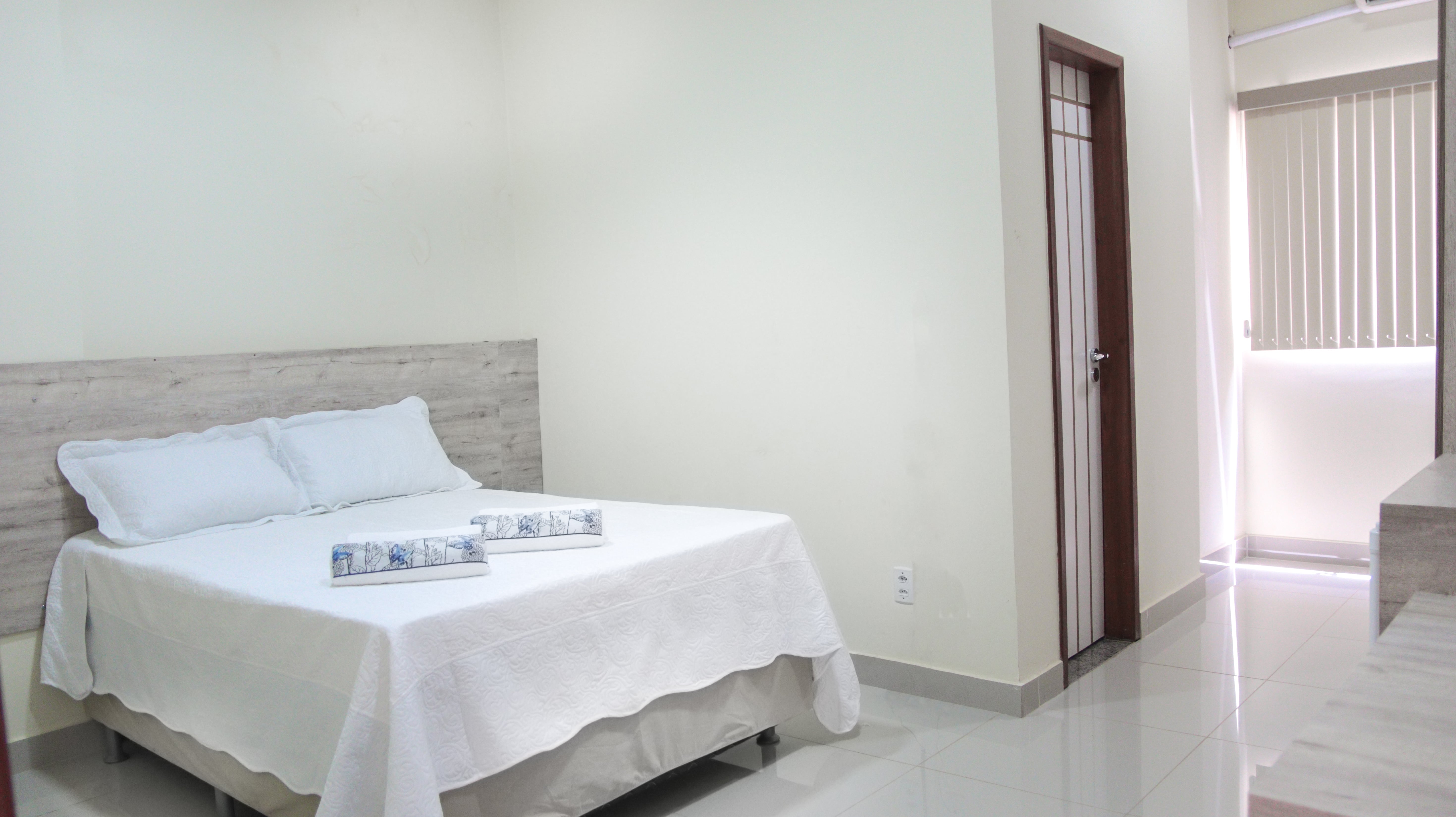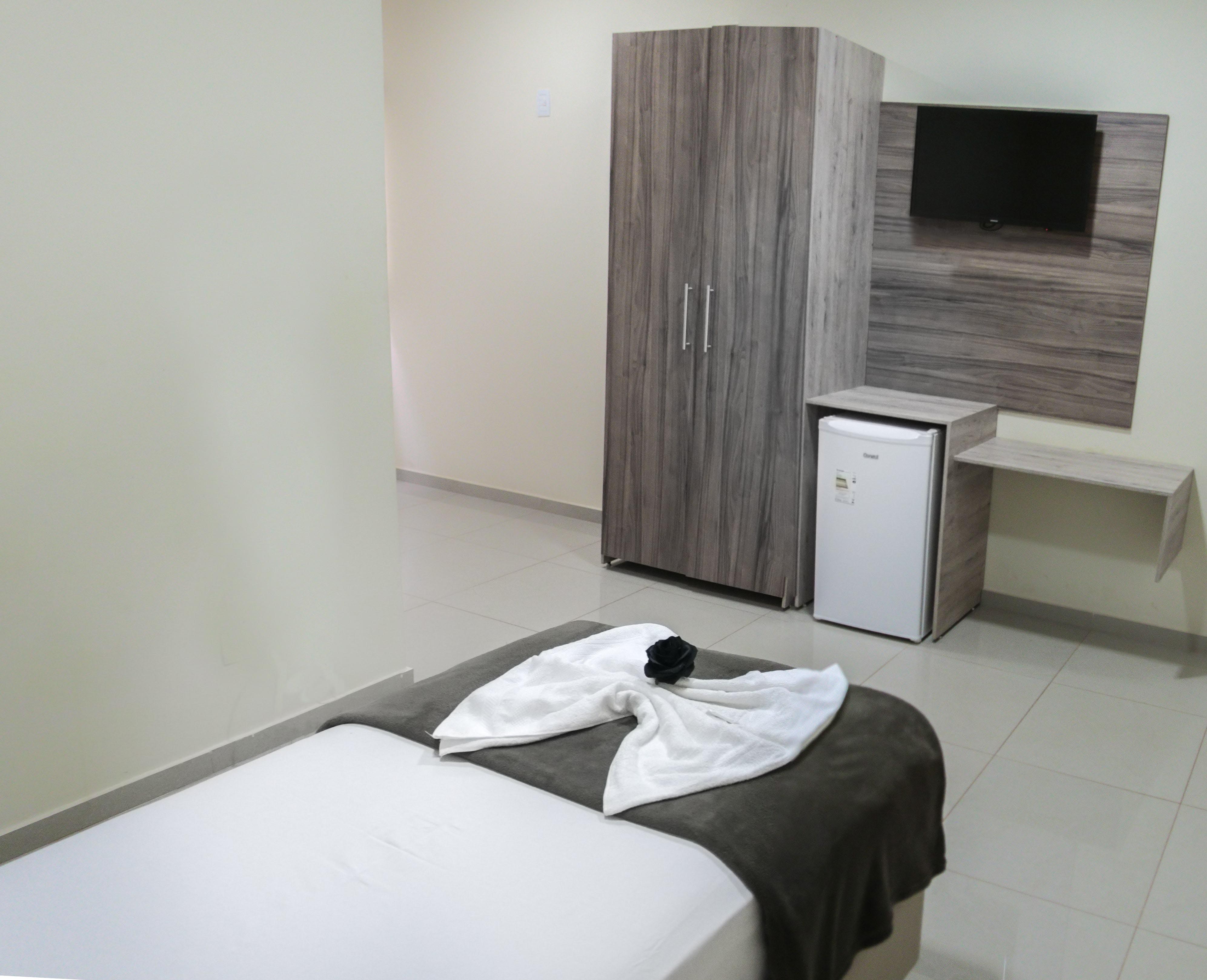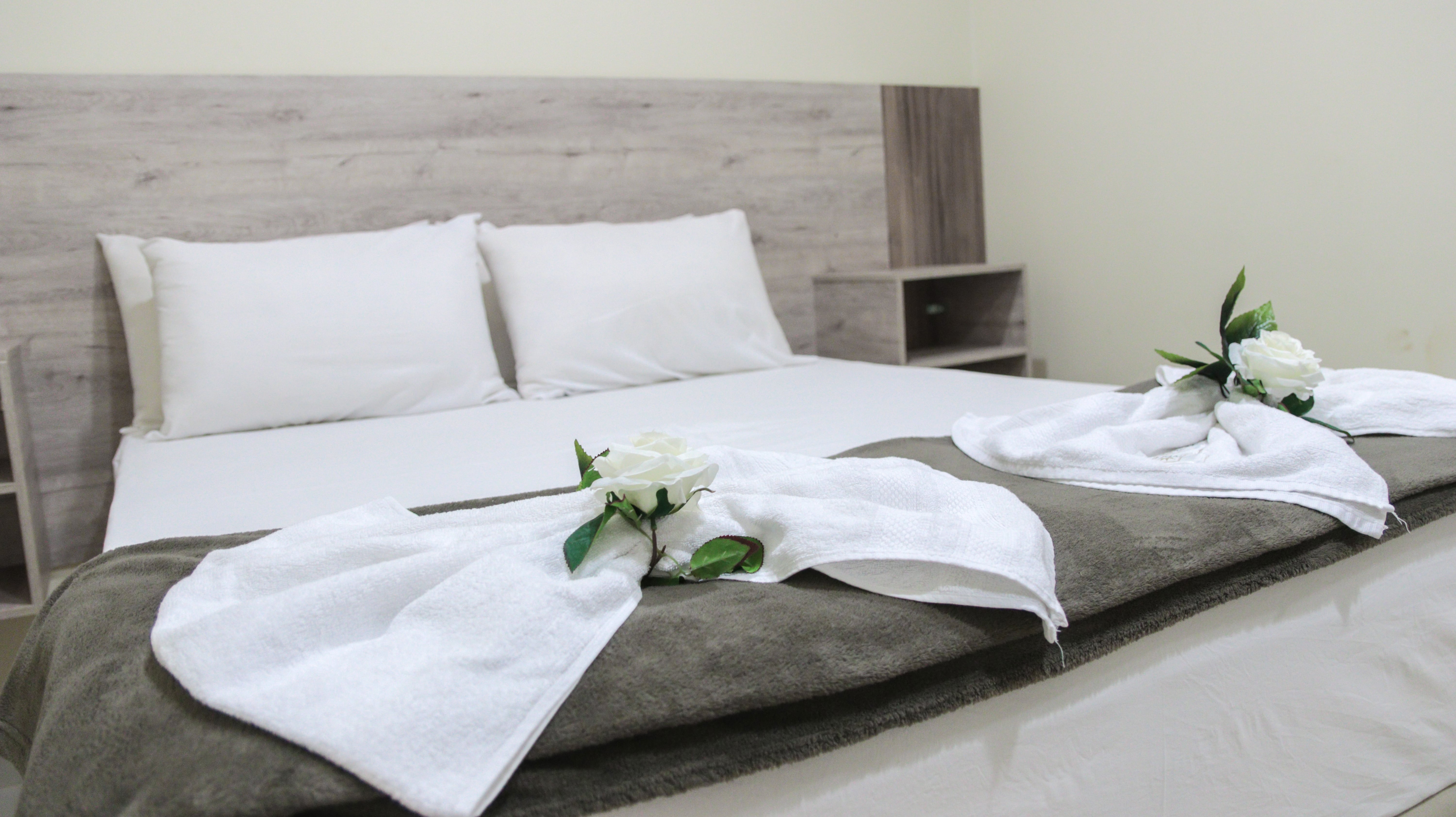 Suíte para você e seu(a) cônjuge, com todo o conforto que você merece. TV, frigobar, ar-condicionado e a mais bela vista da cidade. Conta com uma cama de casal.