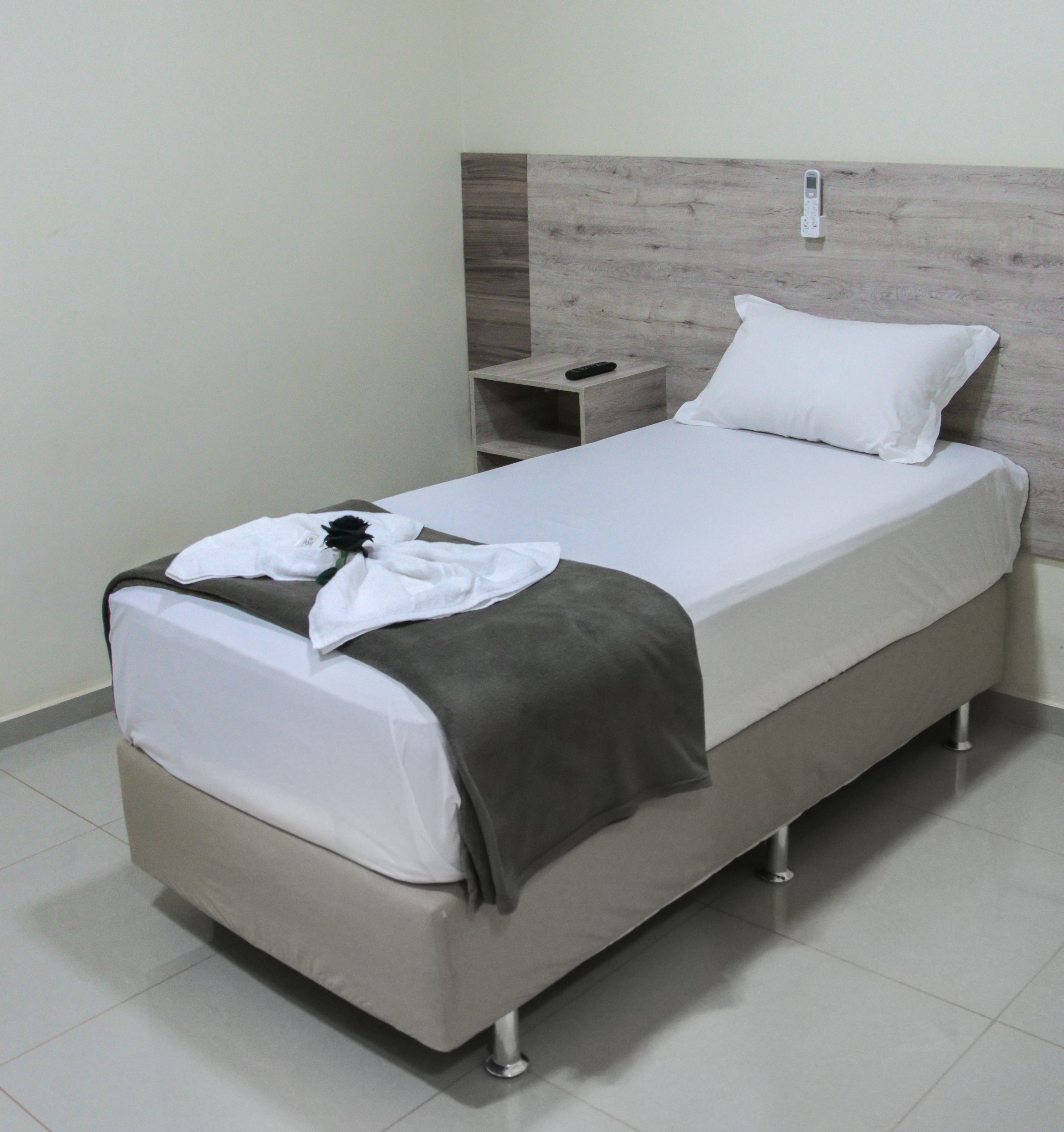 Suíte de grande charme, com todo o conforto que você merece. TV, frigobar, ar-condicionado e a mais bela vista da cidade. Conta com uma cama de solteiro.