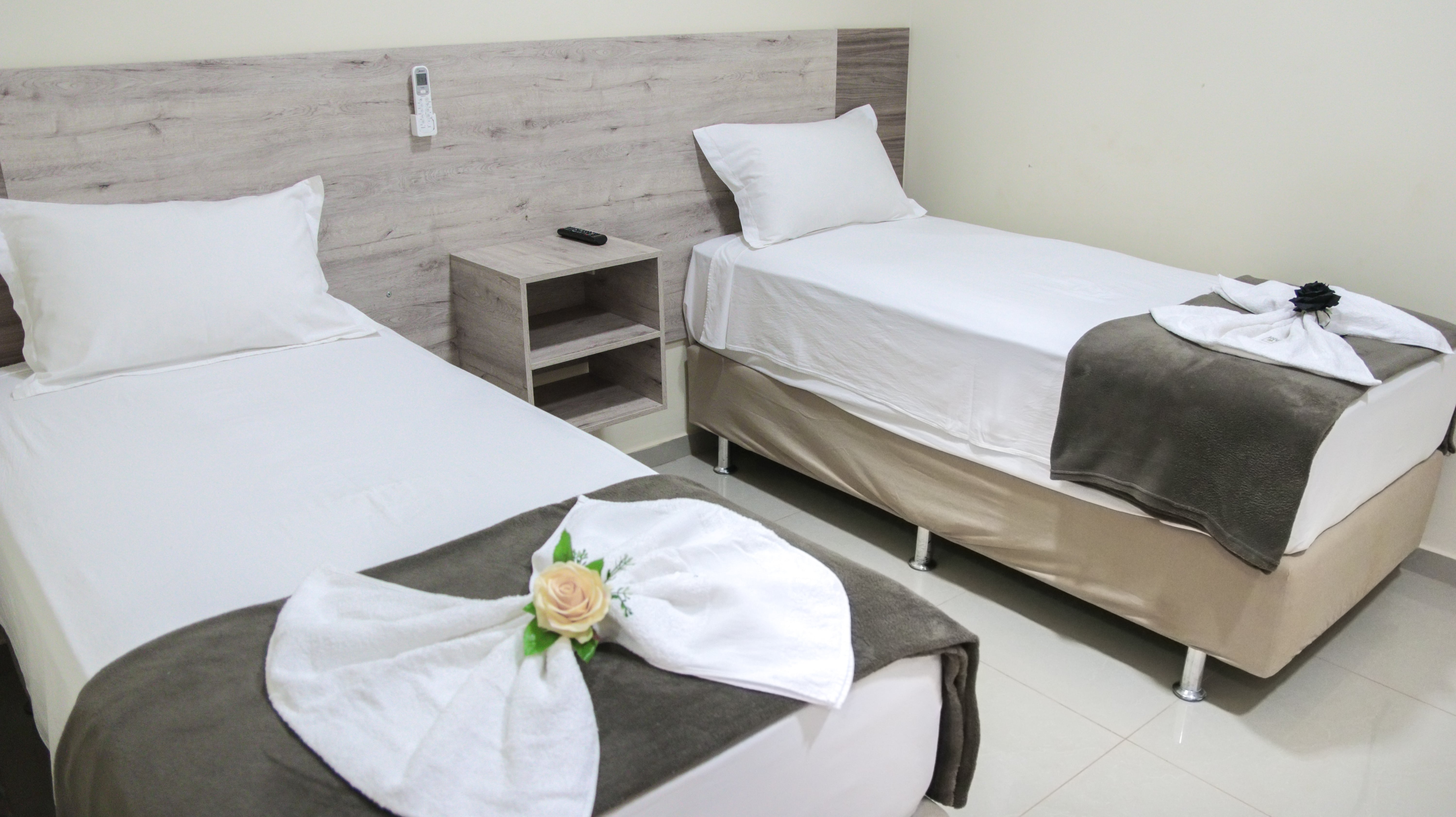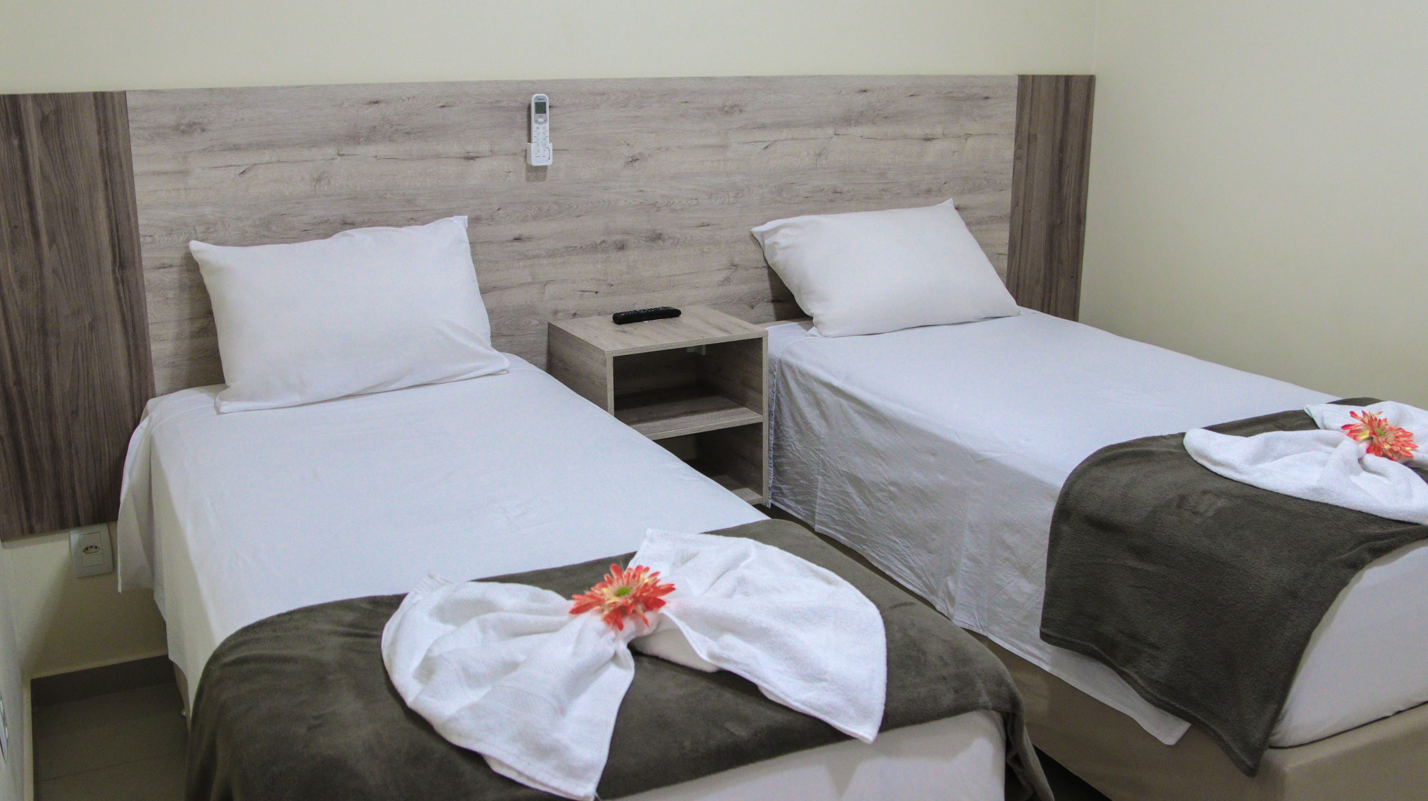 Suíte de grande charme, com todo o conforto que você merece. TV, frigobar, ar-condicionado e a mais bela vista da cidade. Conta com duas camas de solteiro.