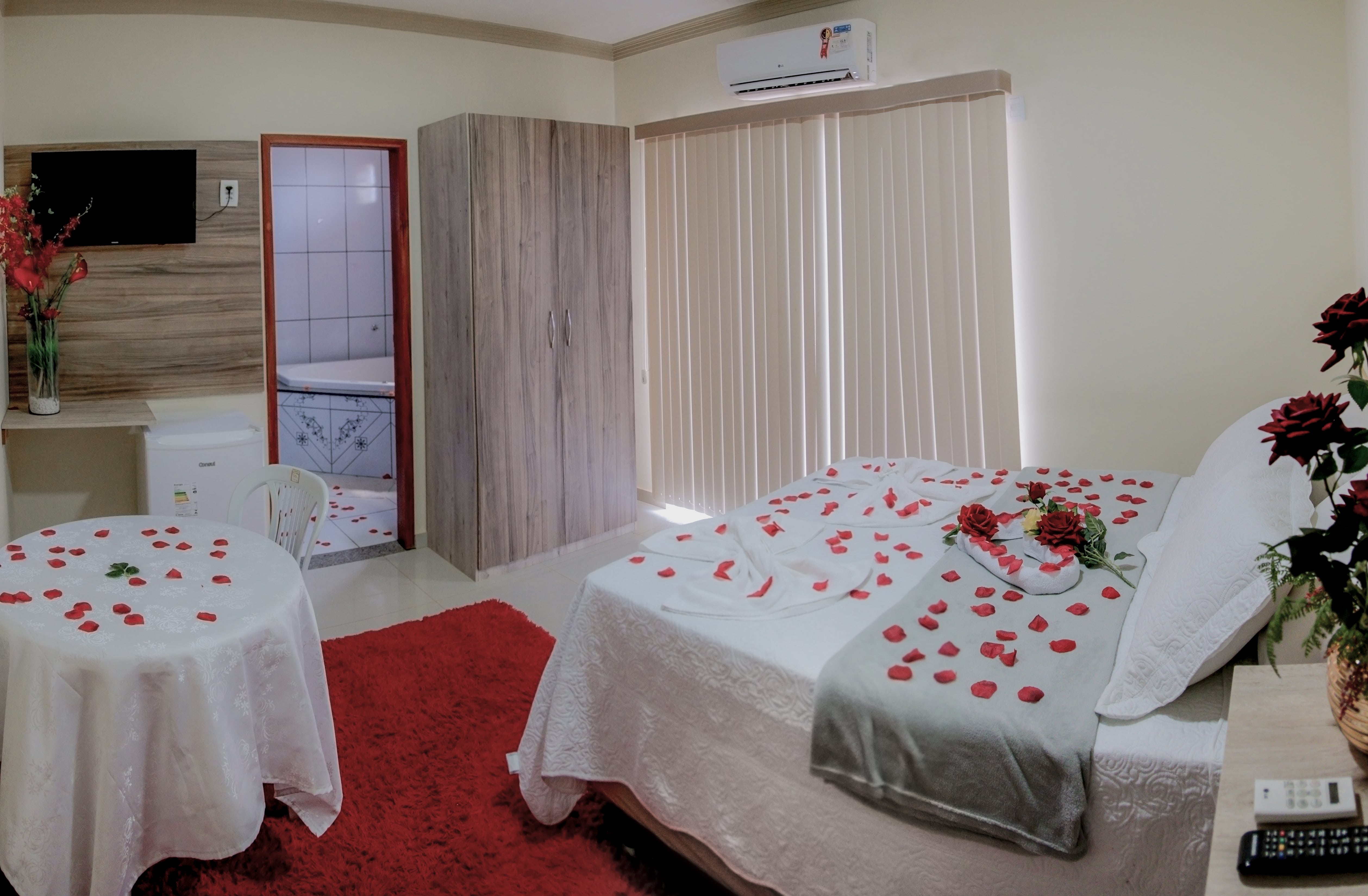 Suíte para desfrutar o melhor do romantismo, com todo o conforto que você merece. TV, frigobar, ar-condicionado e a mais bela vista da cidade. Conta com uma cama de casal e banheira exclusiva.
